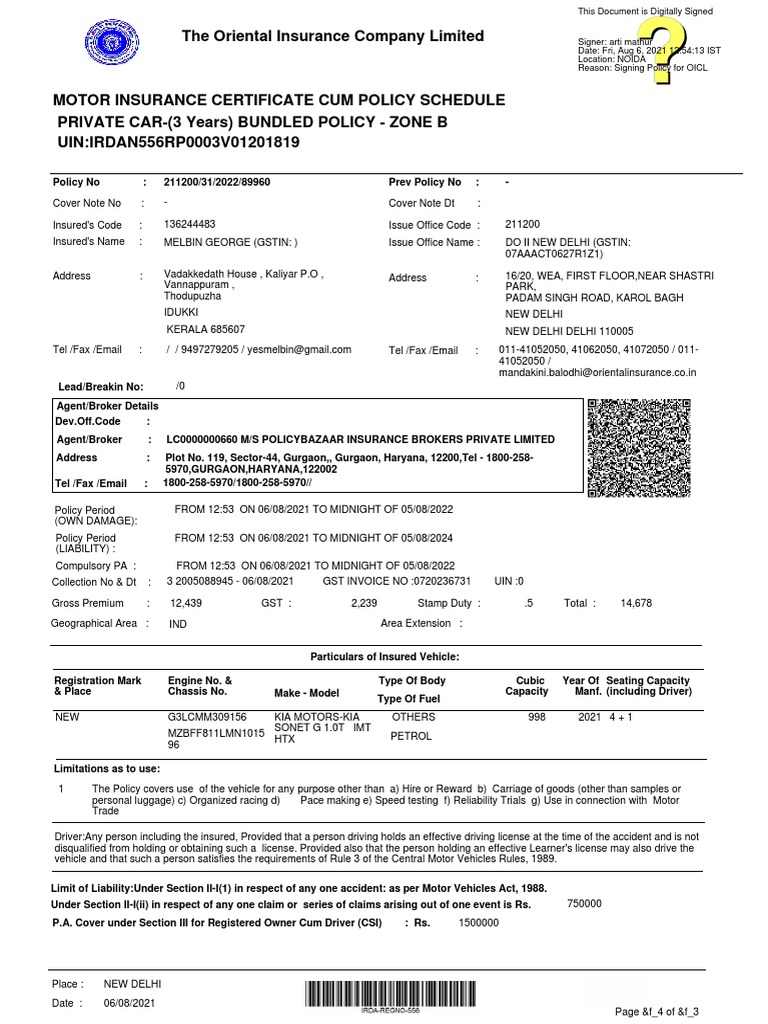 The Oriental Insurance Company Limited PDF Insurance Vehicles
